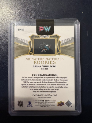 2020-21 The Cup, Signature Materials, Sasha Chmelevski Patch Auto /99