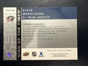 Elvis Merzlikins, 2022-23 SP Authentic, Sign Of The Times Auto