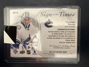Thatcher Demko, 2021-22 SP Authentic, Sign Of The Times Auto