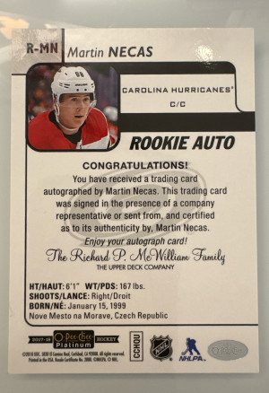 Martin Necas, 2017-18 O-pee-Chee Platinum Rookie Auto