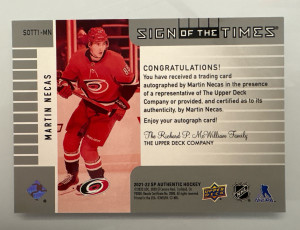 Martin Necas, 2021-22 SP Authentic Sign Of The Times Auto