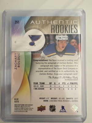 Zachary Bolduc, 2024-25 SP Game Used, Authentic Rookies Auto