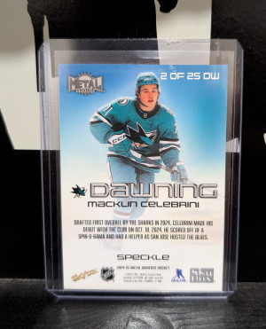 2024 Skybox Metal Universe Dawning Speckle /199 Macklin Celebrini Rookie