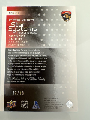 Spencer Knight, 2021-22 Premier, Star Systems Rookie Patch Auto /75
