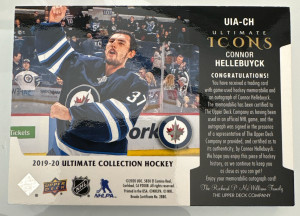 Connor Hellebuyck, 2019-20 Ultimate Icons, Patch Auto /25