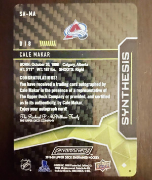 Cale Makar 2019-20 Upper Deck Engrained Synthesis Carbon Fiber auto