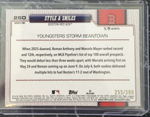 Topps 2026 Series 1 Style & Smile #260 Roman Anthony & Marcelo Mayer Yellow Holo Foil 255/399