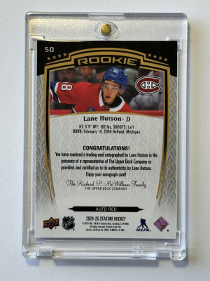 2024-25 Upper Deck Stature Lane Hutson Red Rookie Auto #50 /99
