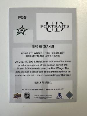 2024-25 Upper Deck UD Portraits Black Parallel Miro Heiskanen