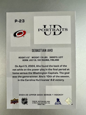 2024 Upper Deck Series 1 Sebastian Aho Black Insert
