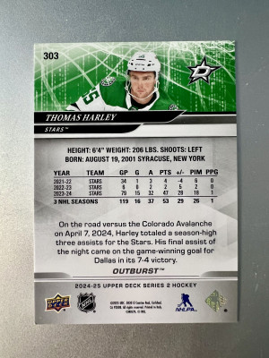 2025 2024-25 Upper Deck Outburst Thomas Harley #303