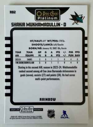 2025 Upper Deck O-Pee-Chee Platinum Shakir Mukhamadullin Rainbow Rookie
