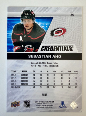 2024 Upper Deck Credentials Sebastian Aho Blue /299