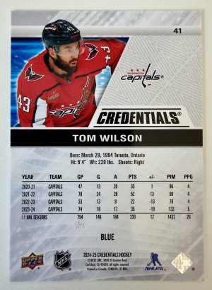 2025 Upper Deck Credentials Hockey Tom Wilson Blue /299