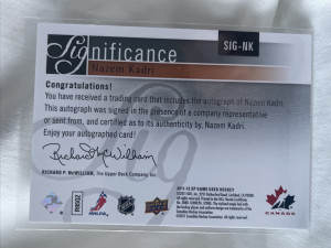 2011-12 SP Game Used Edition SIGnificance /50 Nazem Kadri #SIG-NK Rookie Auto RC
