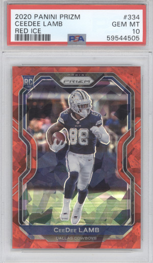 2020 Panini Prizm Football Ceedee Lamb #334 Red Ice Prizm RC PSA 10