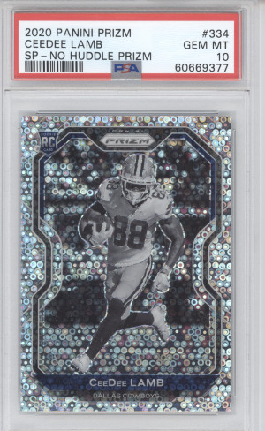 2020 Panini Prizm Football Ceedee Lamb #334 Variation No Huddle RC PSA 10