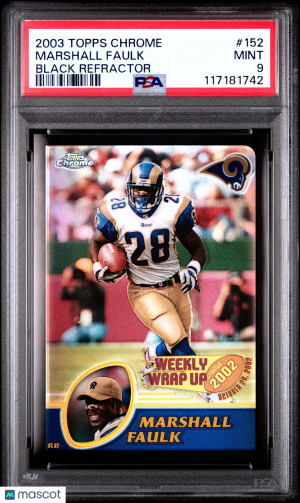 2003 Topps Chrome Football Marshall Faulk #152 Black Refractor 569/599 PSA 9