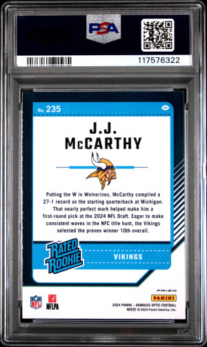 2024 Panini Donruss Optic Jj Mccarthy Purple Shock
