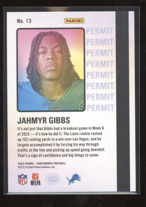 2023 Panini Contenders Football Permit to Dominate Jahmyr Gibbs #13 RC