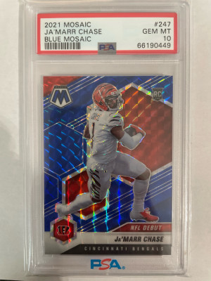 2021 Panini Mosaic Ja’marr Chase Blue Mosaic /99 PSA 10