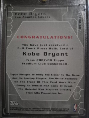 2007 Topps SC Full Court Press Kobe Bryant Dual 2 Color Game Worn Jersey /199!