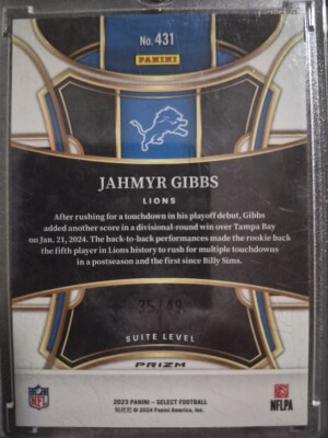 2023 Panini Select - Suite Level Jahmyr Gibbs #431 Red Prizm /49 (RC)