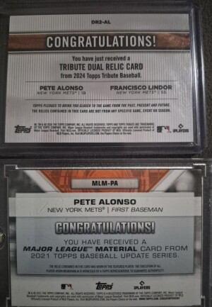 Pete Alonso 2 Card RELIC Lot