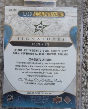 2024/25 UD Clear Cut Roope Hintz UD Canvas Auto #CS-RH