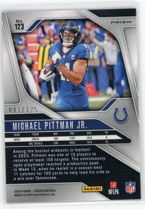 2022 Panini Prizm #123 Michael Pittman Jr. Purple 41/125