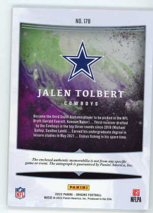 2022 Origins Jalen Tolbert Rookie Jersey Autograph Red 25/99