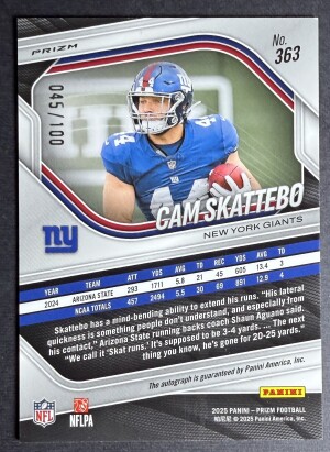 2025 Panini Prizm Cam Skattebo Silver Scope Auto /100 #363