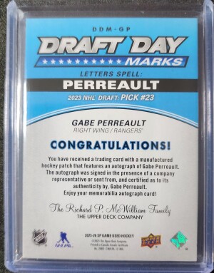 Gabe Perreault Draft Day Marks Auto /35