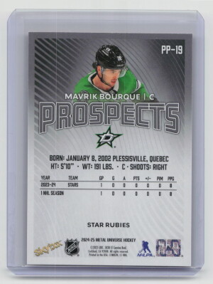 2024-25 Metal Universe Hockey Prospects Mavrik Bourque #PP-19 Star Rubies 11/50