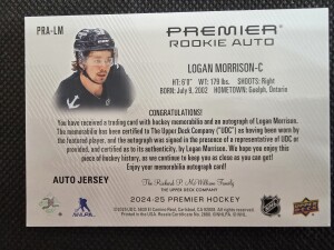 2024 UPPER DECK PREMIER #PRA-LM LOGAN MORRISON ROOKIE AUTO JERSEY RC /99