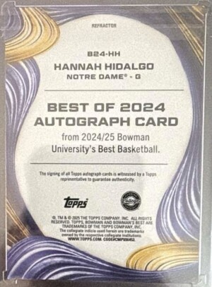 Hannah Hidalgo, 2024-25 Bowman University’s Best Basketball, Refractor AUTOGRAPH