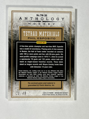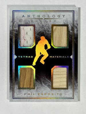 2014-15 Panini Anthology Hockey Tetrad Materials /49 Phil Esposito Game-Used (1xJersey 3xStick) #TM-36