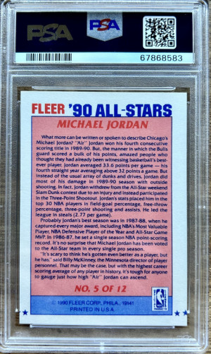 1990 Fleer All-Stars Michael Jordan Chicago Bulls #5 Basketball Card PSA 8 NM-MT