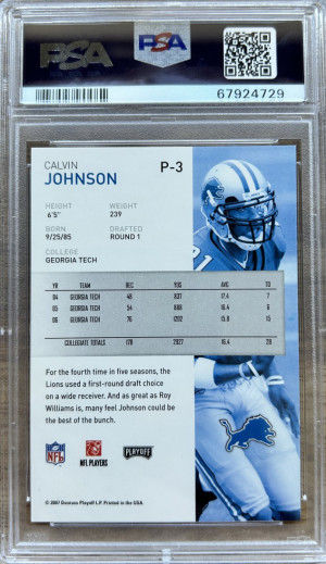 2007 PLAYOFF NFL PLAYOFFS PREVIEW #P-3 CALVIN JOHNSON RC HOF PSA 10