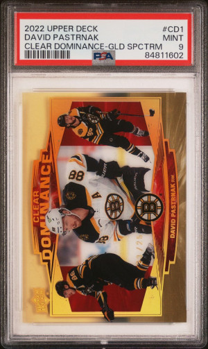 2022 Upper Deck Extended Series Clear Dominance Gold 23/25 David Pastrnak PSA 9