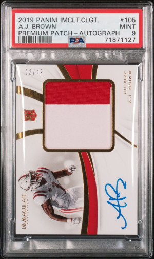 2019 Immaculate Collegiate Premium Gold /49 AJ Brown RPA Rookie Patch Auto RC PSA 9 POP 1