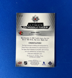 2021-22 UD Shane Pinto Ultimate Introductions Auto Gold /50 #UI-67