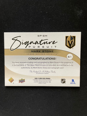 2021-22 UD Premier Signature Pursuit MARK STONE Auto 18/35 Golden Knights