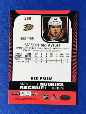 2021-22 OPC Platinum - Mason McTavish Marquee Rookies Red Prism /199 #269