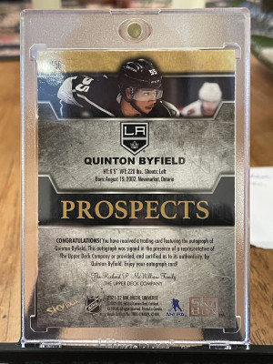2021-22 NHL Metal Universe Quinton Byfield Premium Prospects RC Sapphire Auto