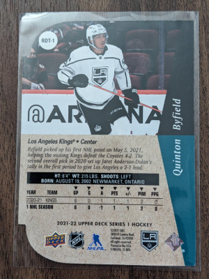 Quinton Byfield Red Die cut Upper deck series 1 2021-23 rookie