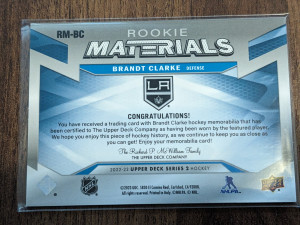 BRANDT CLARKE 2022-23 UPPER DECK ROOKIE MATERIALS RC JERSEY