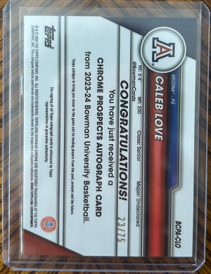 2024 Topps Bowman Chrome University Caleb Love AUTO /75 Gold Refractor