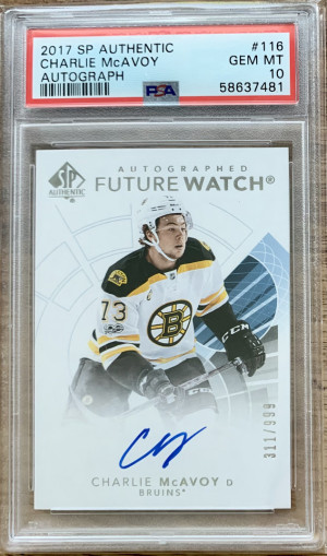 2017-18 SP Authentic Charlie McAvoy Future Watch Auto /999 PSA 10