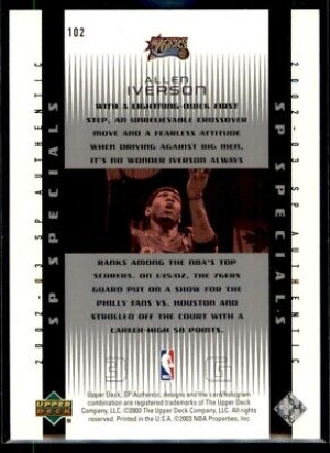 Allen Iverson 2002-03 SP Authentic SP Specials 0691/2000 #102 Philadelphia 76ers